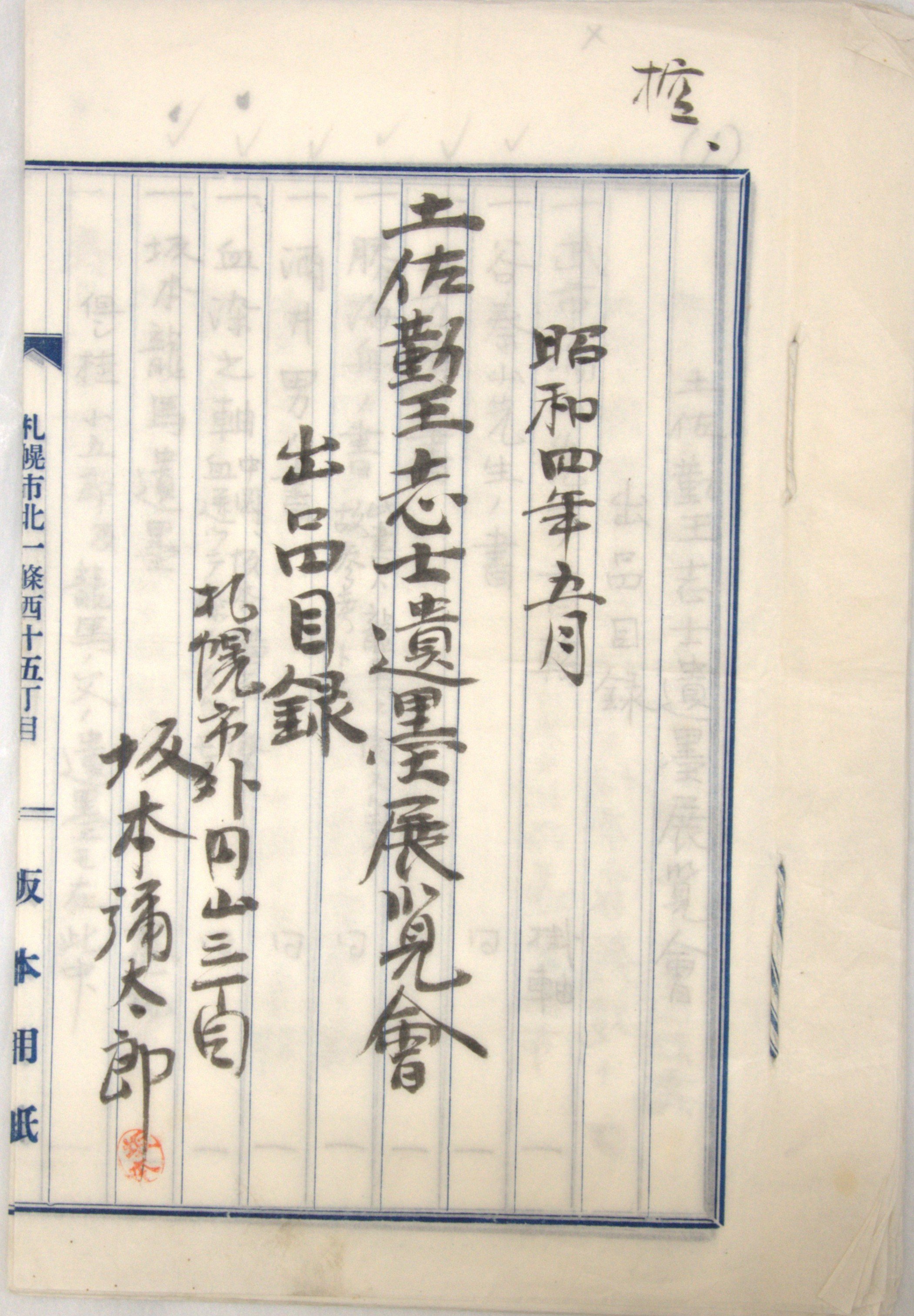 ◆『土佐勤王志士遺墨展覧会出品目録控』(坂本家所蔵 当館寄託)