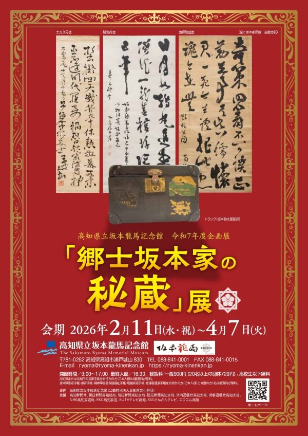 坂本龍馬は郷士坂本家の3代目当主八平の子として生まれており、龍馬の遺品や盟友たちの書画類の一部は同家にて長年秘蔵されてきました。